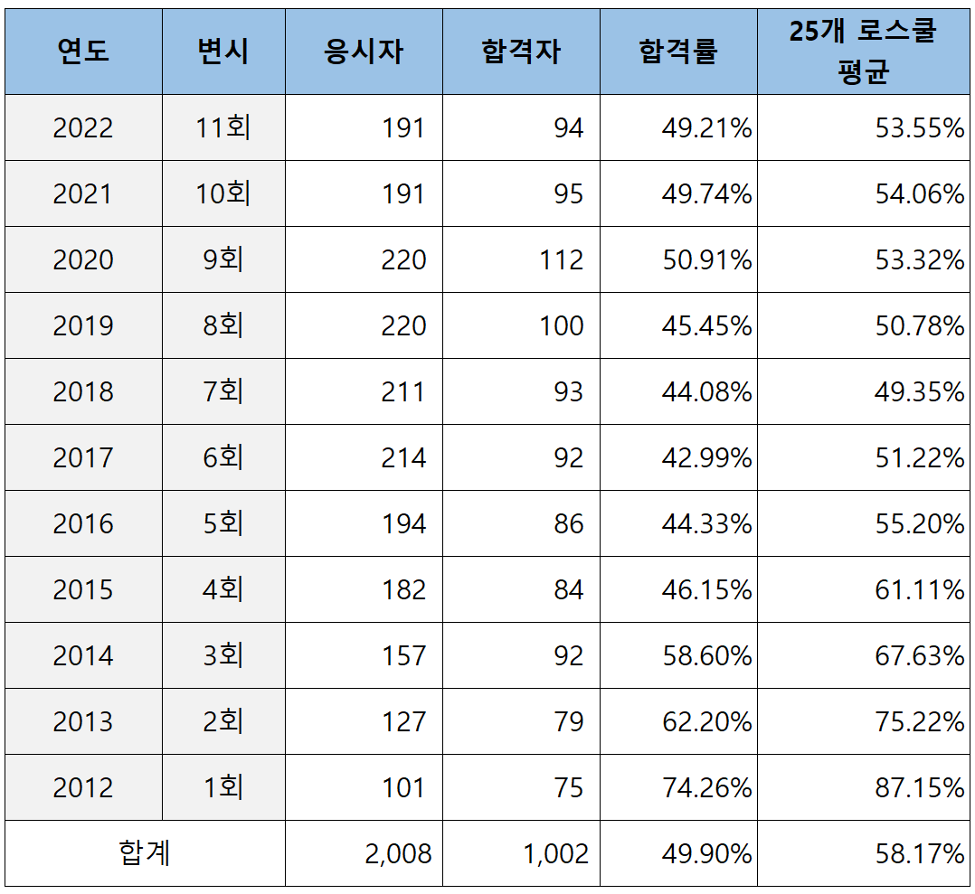 2022년 제11회 변호사시험 대학별 합격률 (+ 로스쿨 초시 합격률 순위)