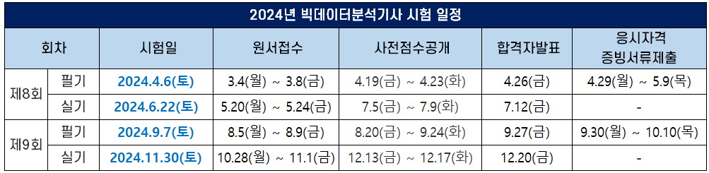 | 2024년 빅데이터분석기사 시험 일정 | |||||