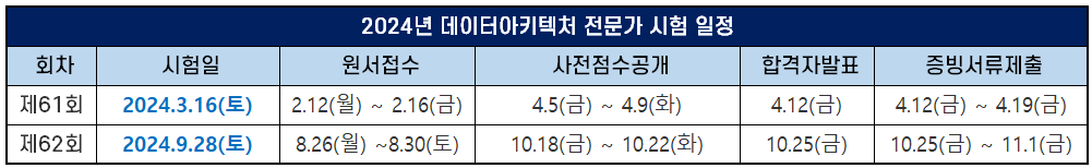 2024년 데이터아키텍처 전문가 시험 일정