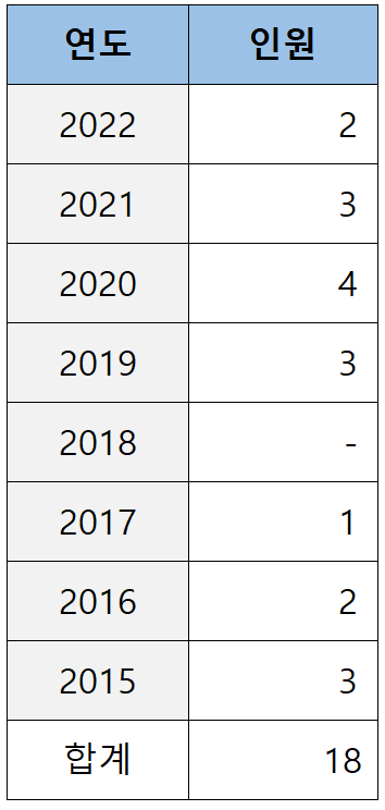 로스쿨 출신이 처음 재판연구원으로 임용되기 시작한 2012년부터 2022년까지 11년간 충남대 로스쿨이 배출한 로클럭은 아래 표와 같습니다.