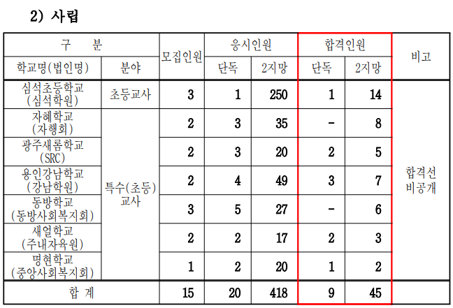 2024학년도 초등학교, 유치원, 특수학교 1차 시험 합격자 발표