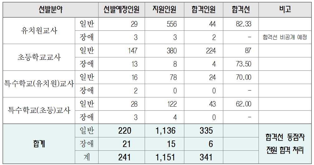 대전광역시 유·초등 임용시험 합격자 현황 및 합격선