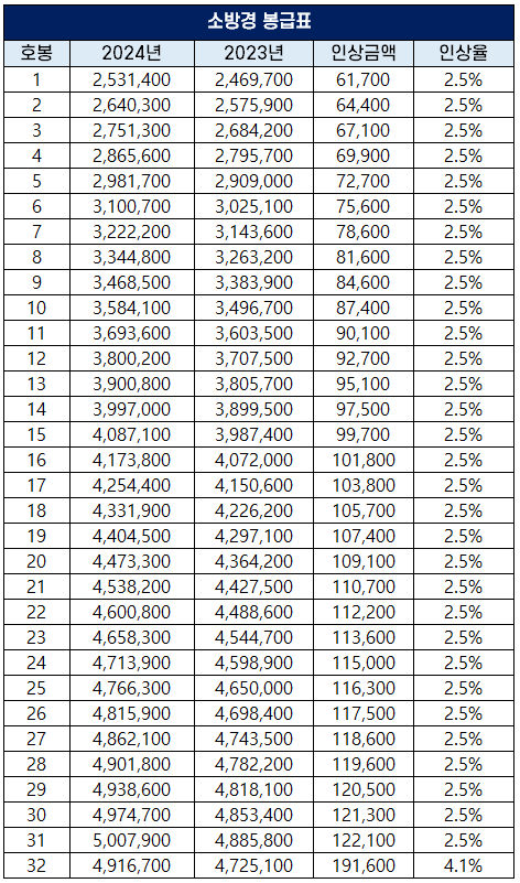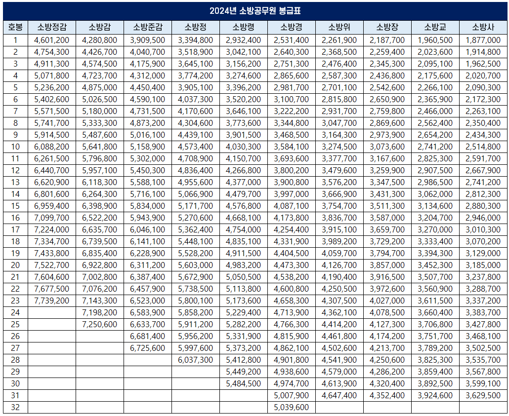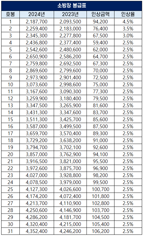 2024년 소방감 봉급표