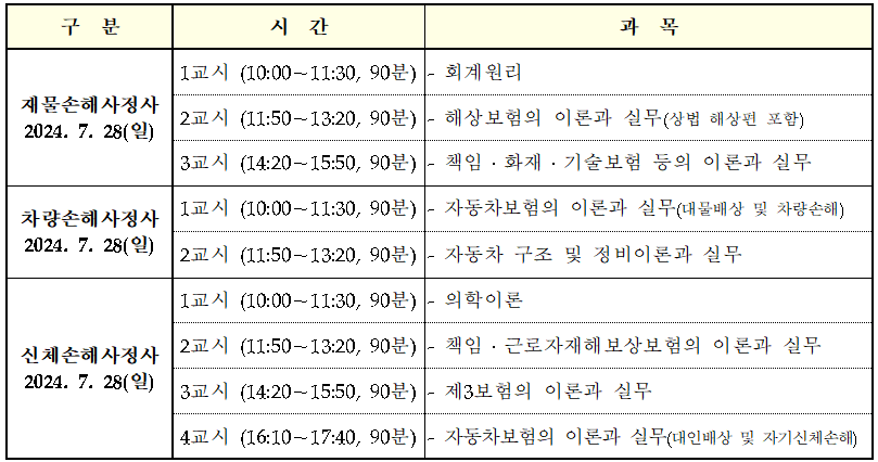 손해사정사 시험 시간표