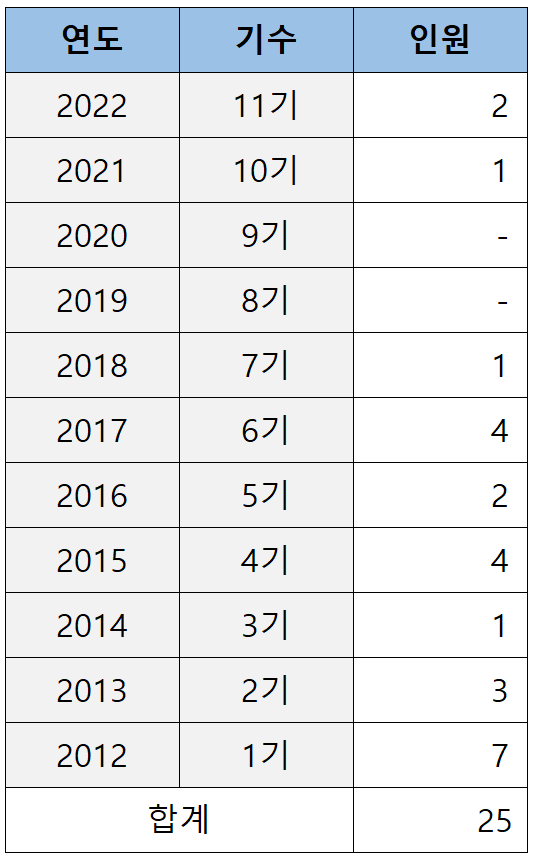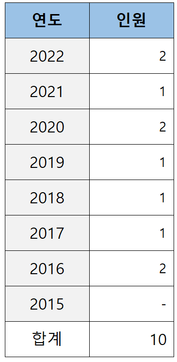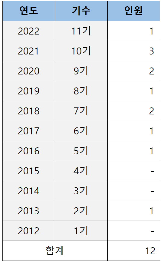 로스쿨 출신이 처음 재판연구원으로 임용되기 시작한 2012년부터 2022년까지 11년간 한국외대 로스쿨이 배출한 로클럭은 아래 표와 같습니다.