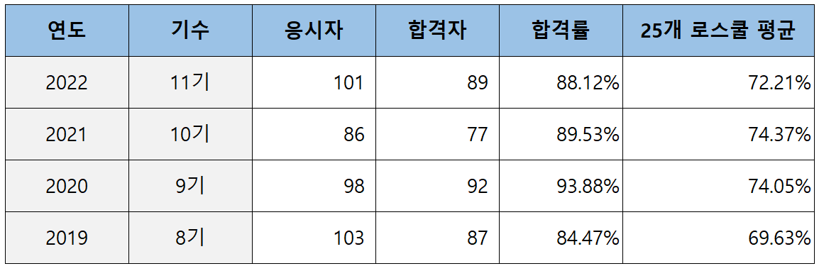 2022년 제11회 변호사시험 대학별 합격률 (+ 로스쿨 초시 합격률 순위)