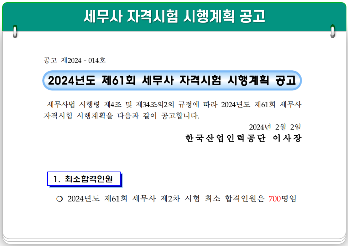 2024년 제61회 세무사 시험 일정 및 시행계획 공고