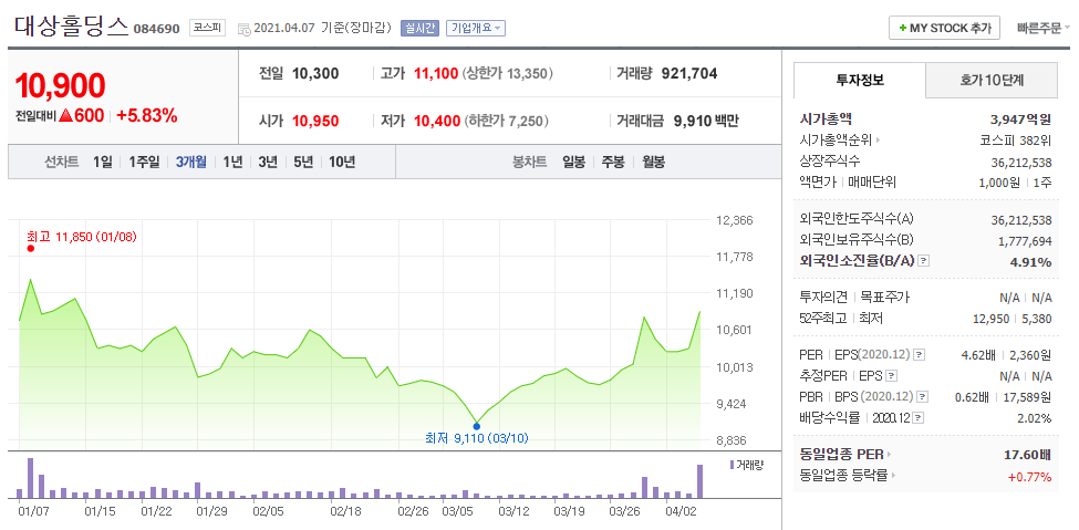 15-9. 대상홀딩스 (084690) / 대상홀딩스우(084695 코스피)