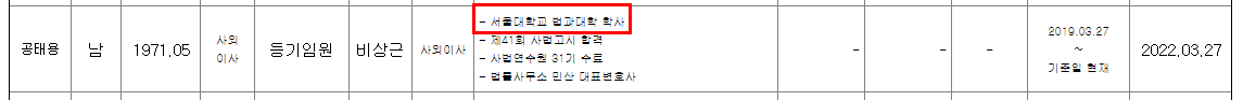 이유: 사외이사가 윤석열 전 총장과 충암고 동문 혹은 서울대 법대 동문이라고 알려졌으나 구체적으로 어떤 인물인지는 밝혀지지 않음.
