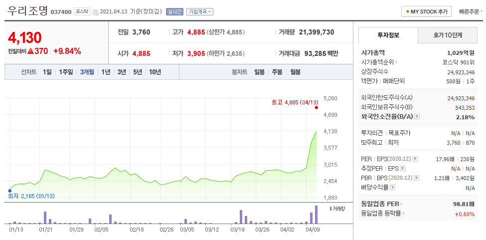 이유: 2021년 3월 새로 선임된 유재만 사외이사가 윤석열 전 총장과 서울대 법대 동문(1981년부터 2년간 학교를 같이 다님). 유재만 변호사가 이전에 사외이사로 있던 서연은 윤석열 관련주 대장주였음.