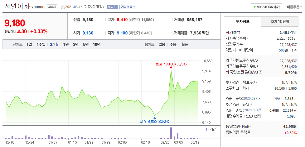 이유: 모회사 서연이 윤석열 관련주. 윤석열 관련주인 서연이화와 같은 계열사.