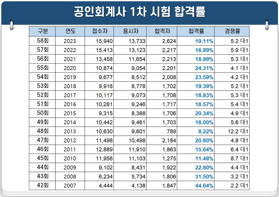 공인회계사(CPA) 시험 1차 2차 합격률 및 기출 문제 모음