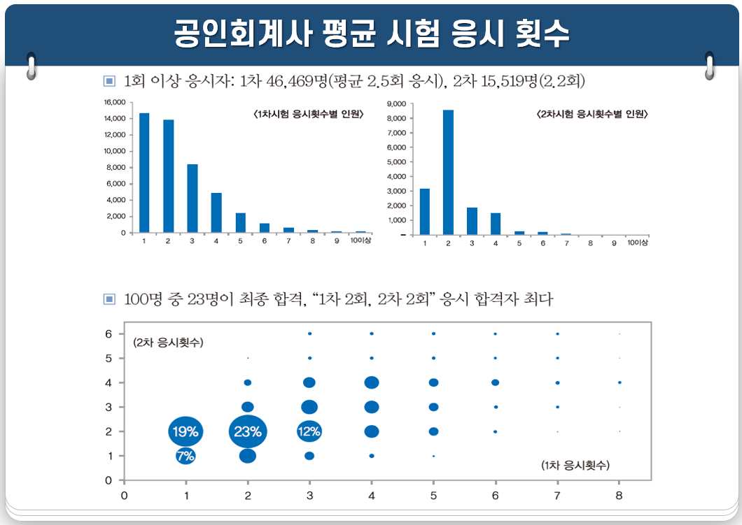 최종 합격하기까지 1차 시험의 평균 응시 횟수는 2.5회, 2차 시험의 평균 응시횟수는 2.2회였습니다.