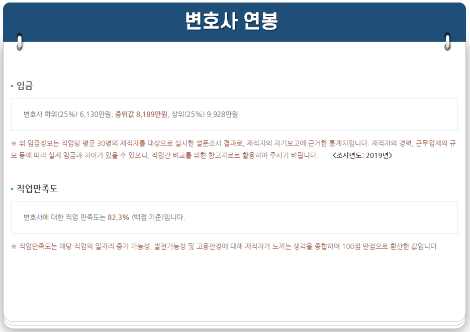 한국고용정보원에 따르면 변호사의 평균 연봉은 8,189만 원이고, 상위 25%는 9,928만 원, 하위 25%는 6,130만 원입니다.