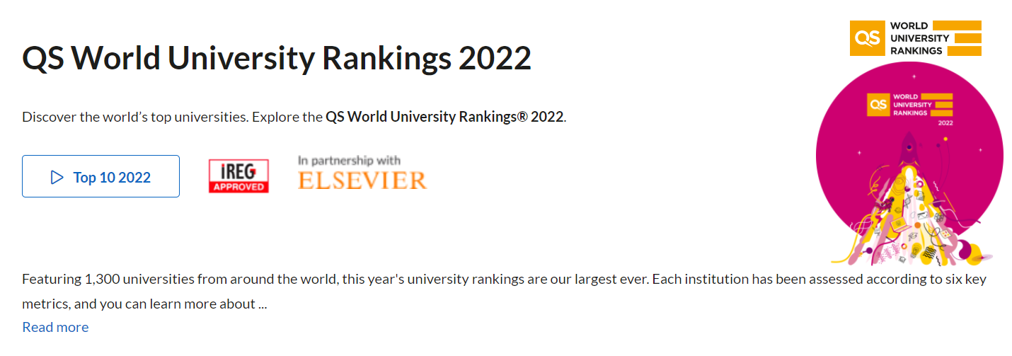 가장 공신력 있는 세계 대학 평가기관 중 하나인 영국의 QS(Quacquarelli symonds)가 2022년데 세계 대학교 순위를 발표했습니다.