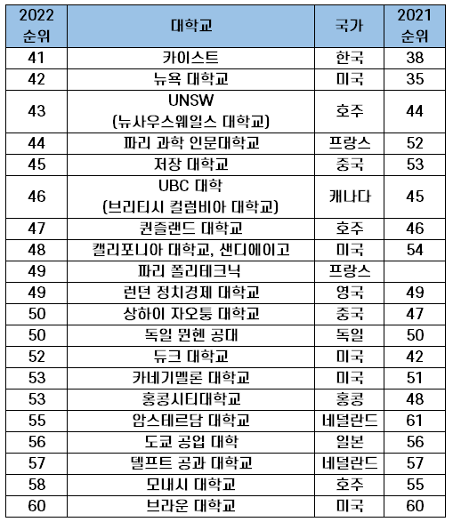 | 41 | 카이스트 | Korea Advanced Institute of Science and Technology (KAIST) |