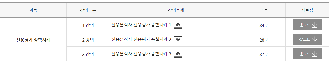 한국 금융연수원에서는 신용평가 종합사례 문제에 대한 설명과 무료 강의를 제공하고 있습니다. 아래 그림을 클릭하면 링크로 연결됩니다.