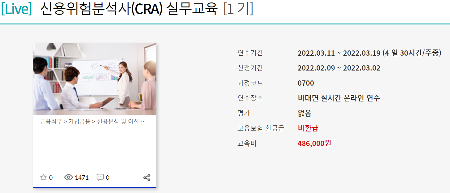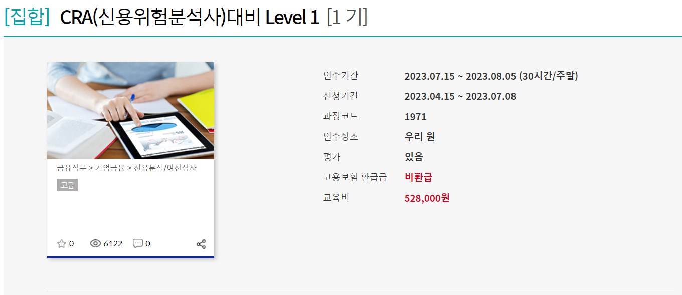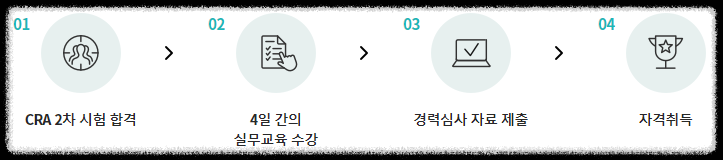 실무교육은 별도의 평가없이 교육으로만 진행되고, 교육을 이수한 후에 경력심사를 신청할 수 있습니다. 경력 심사에서 시험 합격 전후 3년 이상 신용위험 분석 업무를 담당한 경력이 인정되면 신용위험분석사 자격증을 취득하게 됩니다.