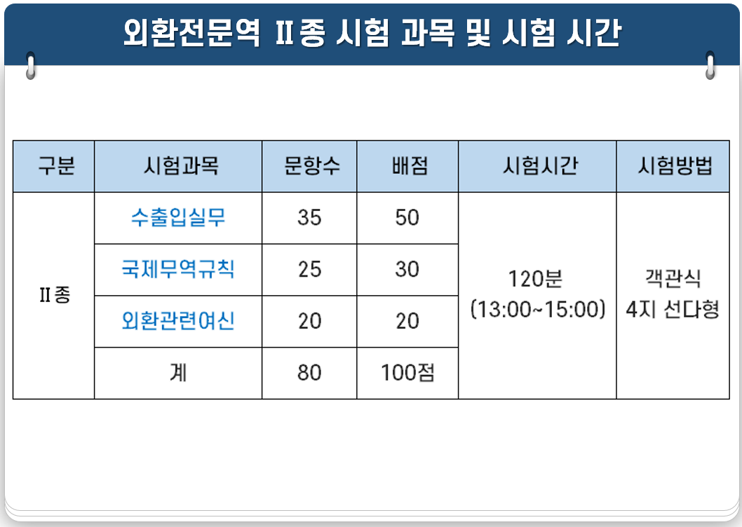 외환전문역 Ⅱ종 시험과목 및 시험 시간