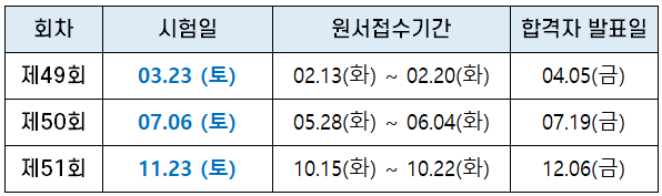 2020년에는 코로나 19로 인해 예외적으로 2회 시험이 시행되었지만, 외환전문역 시험은 통상 1년에 3회 시험이 시행됩니다. 외환전문역 1종과 2종 시험이 같은 날 시행되며 외환전문역 Ⅰ종은 오전(10:00 ~ 12:00)에, 외환전문역 Ⅱ종은 오후(13:00 ~ 15:00)에 시험을 봅니다.