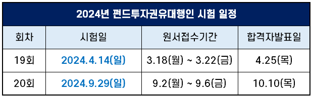 2024년 펀드투자권유대행인 시험 일정 (원서접수, 시험 시간)