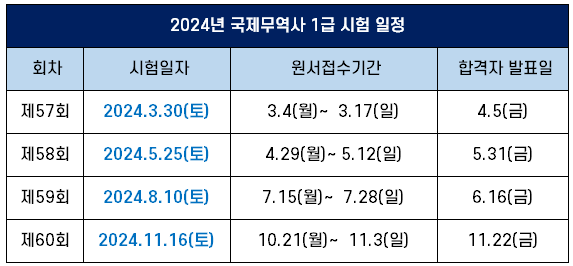 2024년 국제무역사 1급 시험 일정 및 변경사항 안내