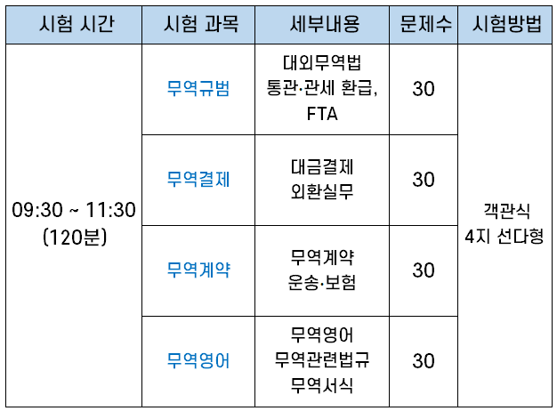 무역규범을 꼼꼼이 공부하고, 나머지 과목은 기본 개념과 기출문제 위주로 공부하면 1~2달 정도면 충분히 합격 가능합니다.