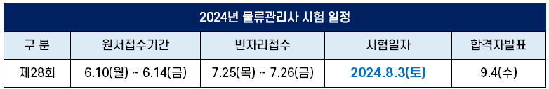 2024년 물류관리사 시험 일정 (제28회 시행공고 및 시간표)
