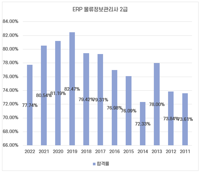 2011년부터 2022년까지 ERP 물류정보관리사 2급 접수자, 응시자, 합격자 및 합격률은 다음과 같습니다.