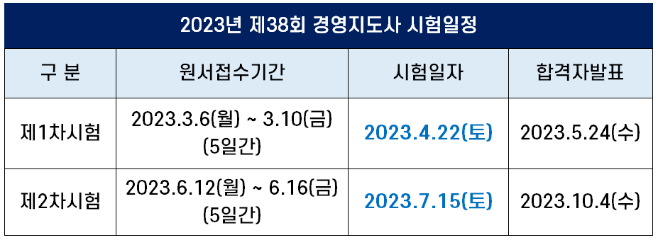 2023년 제37회 경영지도사 시험 일정은 아래 표와 같습니다.