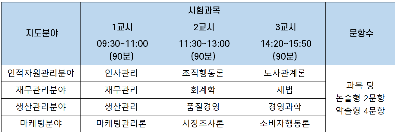 | 구분 | 시험과목 | 문항수 | 시험시간 |