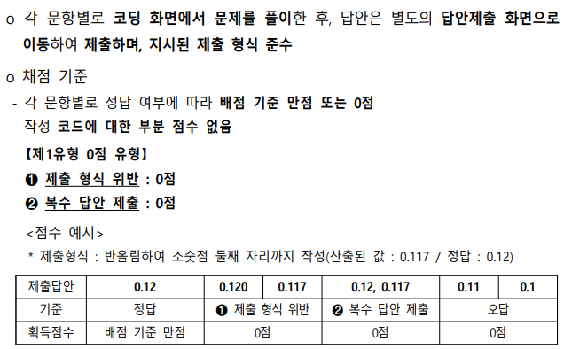 지난 6월 19일에 처음 시행된 빅데이터 분식기사 실기 시험의 합격률은 59.9%였습니다. 채점의 기술적 오류로 인해 전체 수험자에 대한 답안을 다시 확인하면서 합격자가 늘어 실기 시험 합격률이 필기시험 합격률보다 높아진 것으로 보입니다. 특히 작업형 제2유형 문제가 파이썬으로 코드를 제출한 경우는 40점 만점, R로 코드를 제출한 경우는 0점이라는 오류가 많이 발생했었었고, 답안을 다시 검토한 후 많은 수험생의 점수가 변경되었습니다.