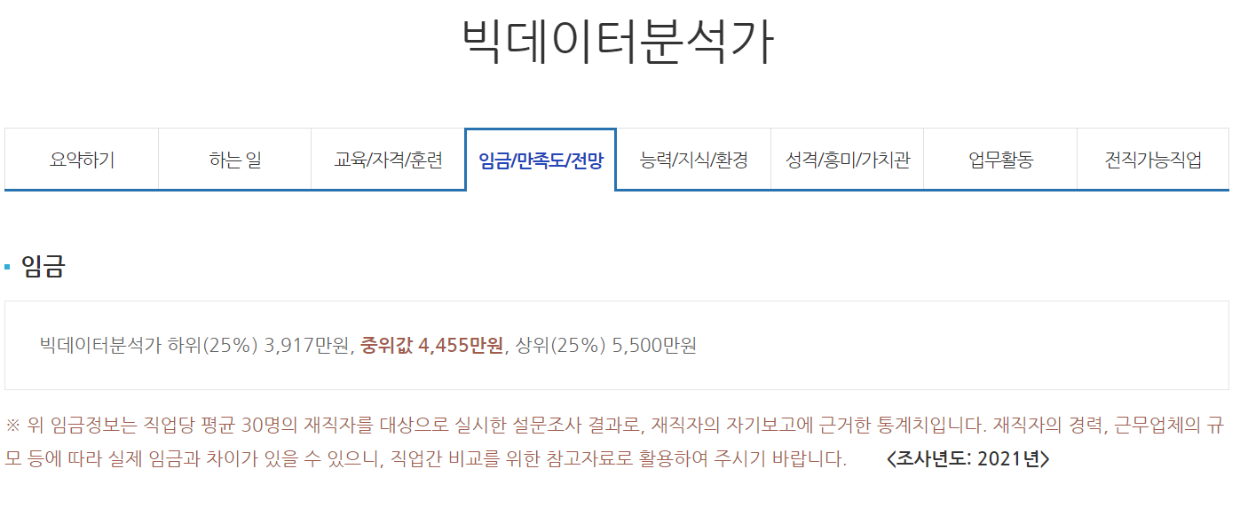 2021년 워크넷이 조사한 빅데이터 분석가 연봉 평균은 4,455만 원이었습니다.