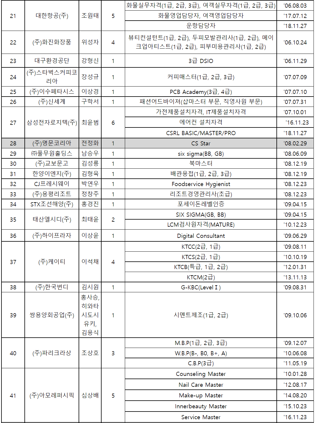 ㉰ 사업내 자격증
