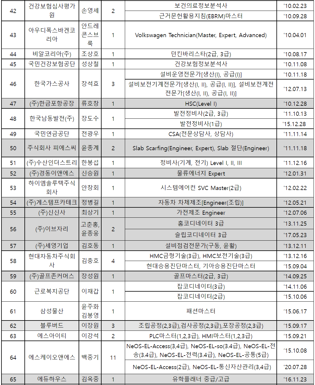 | 고용노동부 | · 공인노무사 | · 직업능력개발훈련교사 |