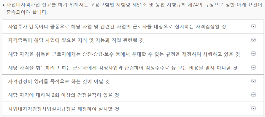 사업내자격증으로 인정받기 위해서는 다음의 요건을 갖추어 한국산업인력공단에 신고해야 합니다.