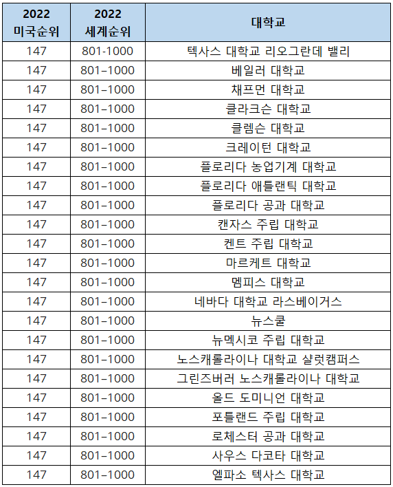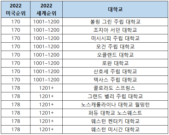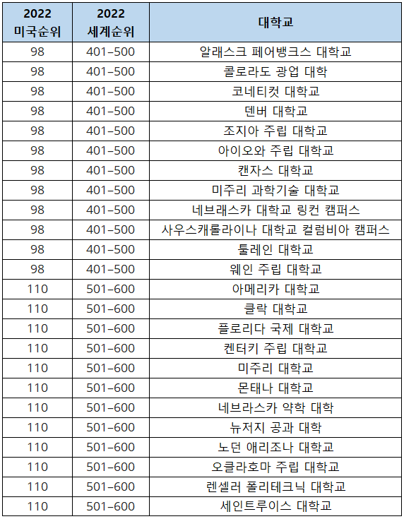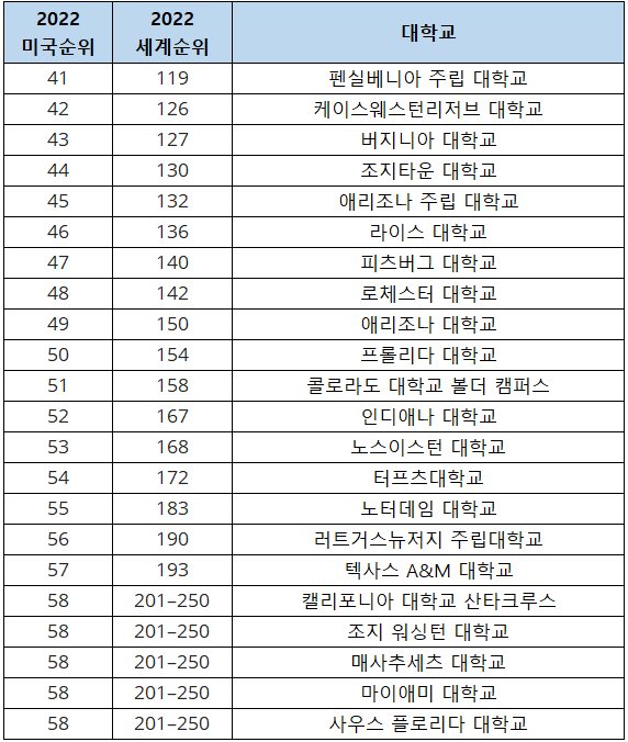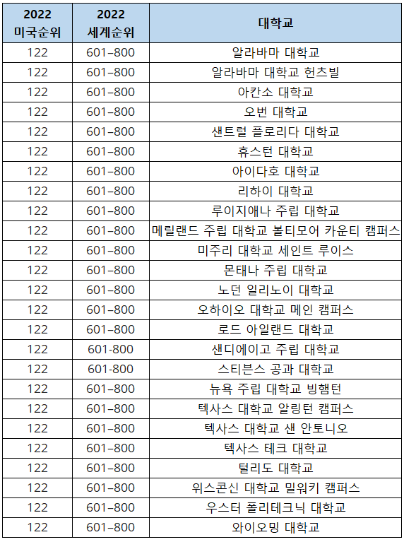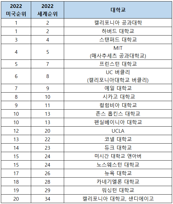 2022-2023 US News 미국 대학 순위 바로가기