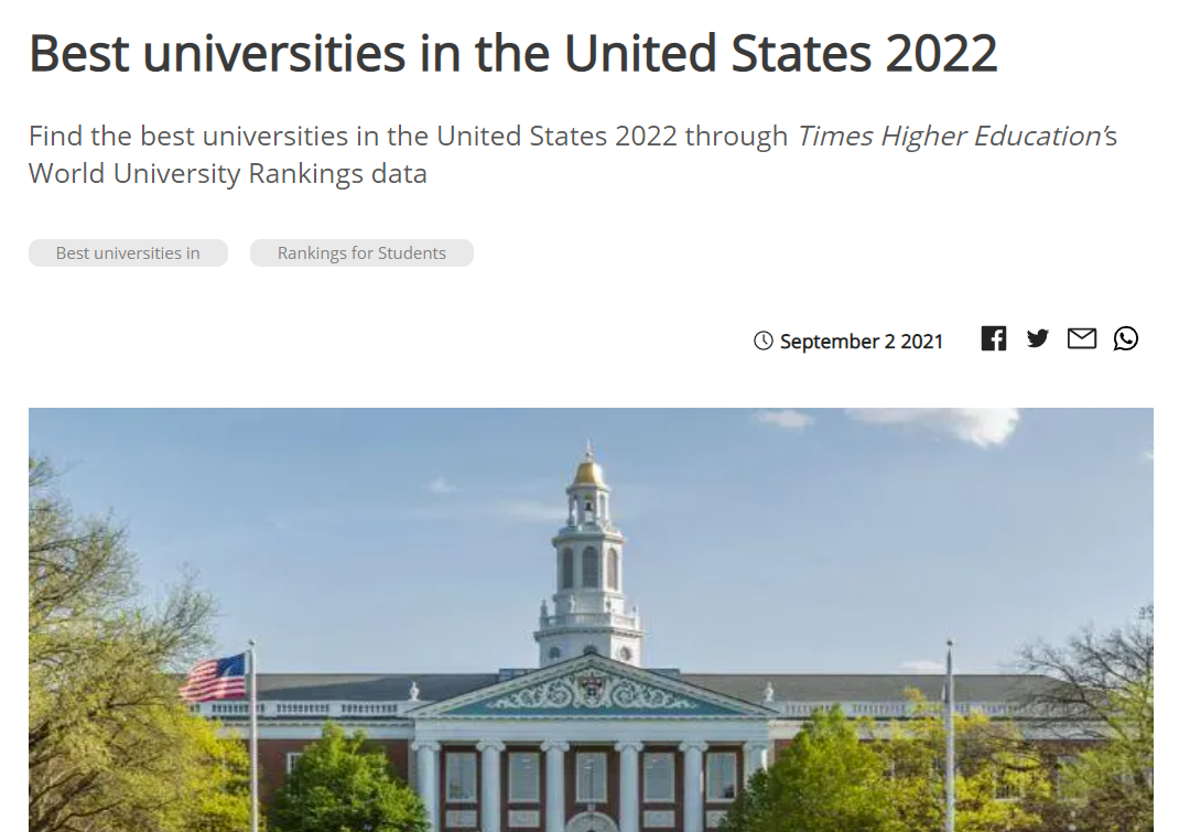 미국 현지 시간으로 2021년 9월 12일, 2022년 US News& World Report 순위가 발표되었습니다.
