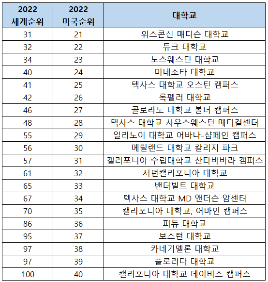 | 22 | 위스콘신 매디슨 대학교 | University of Wisconsin-Madison |