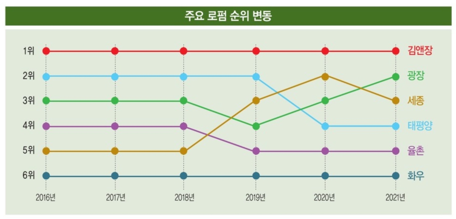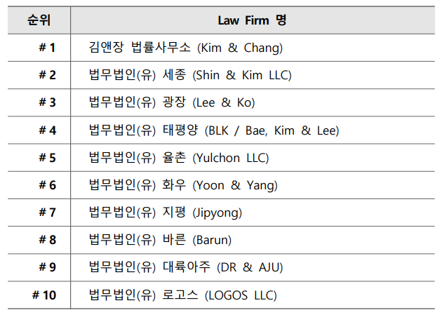 참고로 2021년 김앤장은 53위, 태평양은 160위, 광장은 173위에 올랐었습니다.