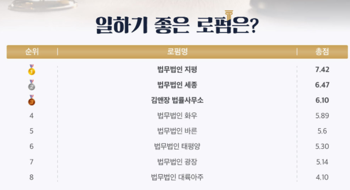 직원들이 일하기 좋은 로펌 순위는?