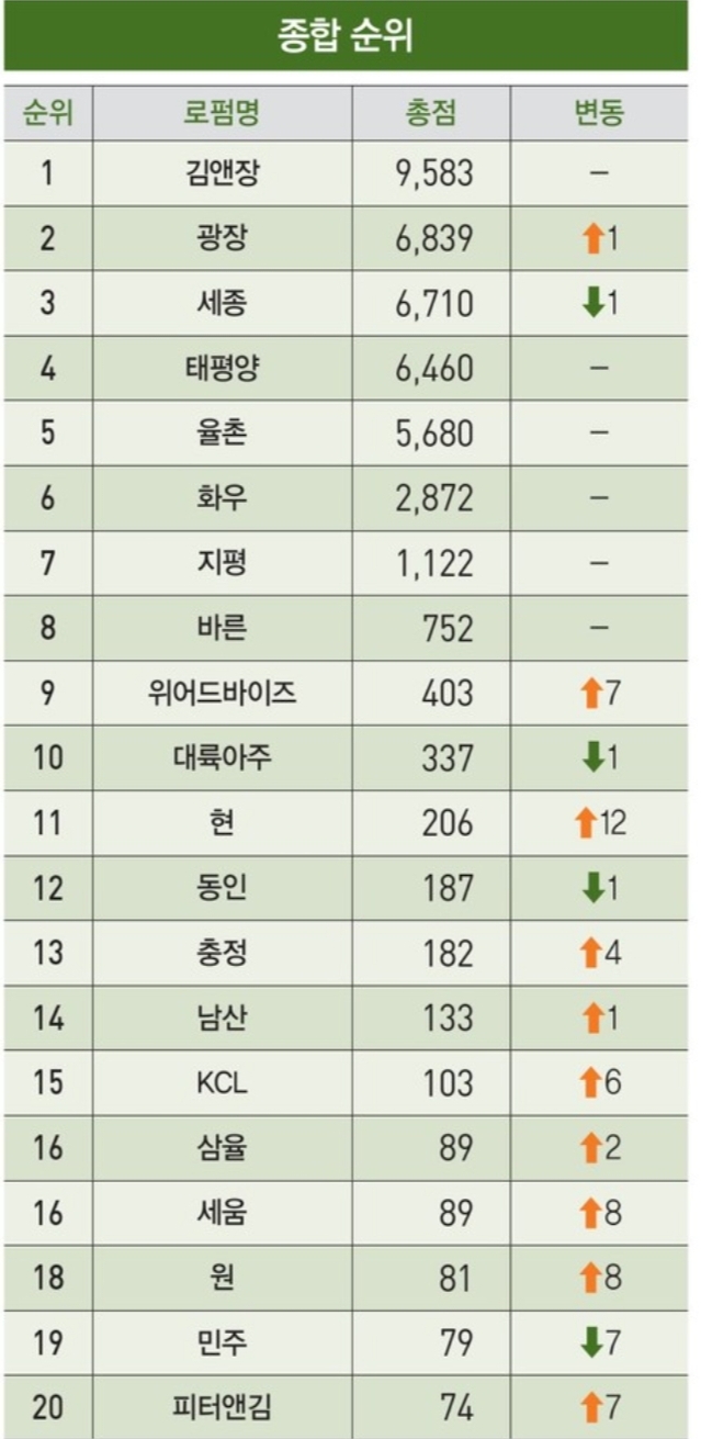 한경 대한민국 BEST 로펌 순위 TOP 20