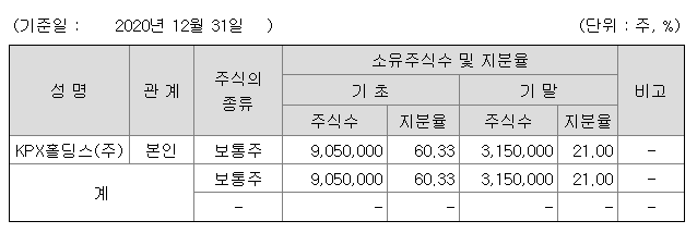 이유: KPX홀딩스와 진양홀딩스 부회장인 양준영의 동생 양준화이사가 그린케미칼의 대표이사