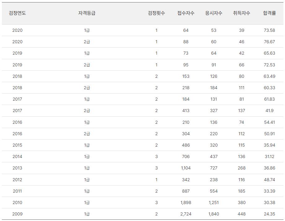 따라서 난이도와 함께 합격률, 자신이 공부에 투자할 수 있는 시간과 상황 등을 감안해 어떤 자격증을 취득할지 신중히 선택하여 준비하시기 바랍니다.