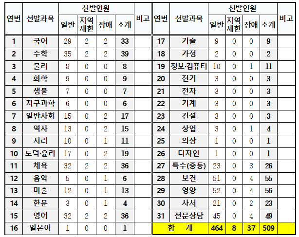 전국 17개 지역의 과목별 티오는 별도의 포스팅으로 정리했으니 하단에 첨부한 링크를 참조하세요!