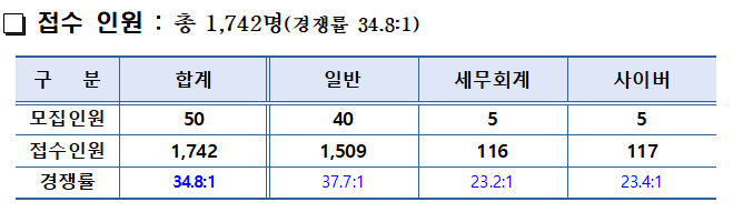 5명을 선발하는 사이버 분야도 117명이 지원해 23.4대 1의 경쟁률을 기록했고, 역시 지난해보다 지원자가 18명이 증가하면서 경쟁률이 상승했습니다.