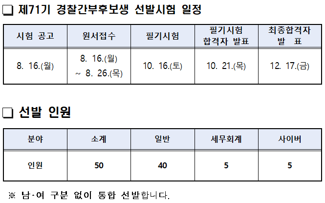 2023년 제72기 경찰 간부후보생 선발 시험 과목 변경 안내 및 주의사항