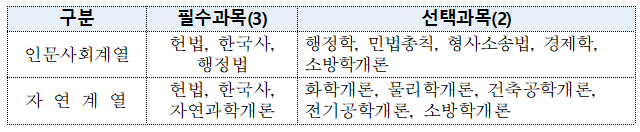 소방간부후보생 필기시험은 필수 4과목, 선택 2과목으로 총 6과목으로 구성되는데요. 영어 과목이 영어능력검정시험으로 대체되어 실제 필기시험장에서는 5과목을 치르게 됩니다. 과목마다 객관식 문제 25문제가 출제되어 125문제를 125분 동안 풀어야 합니다.