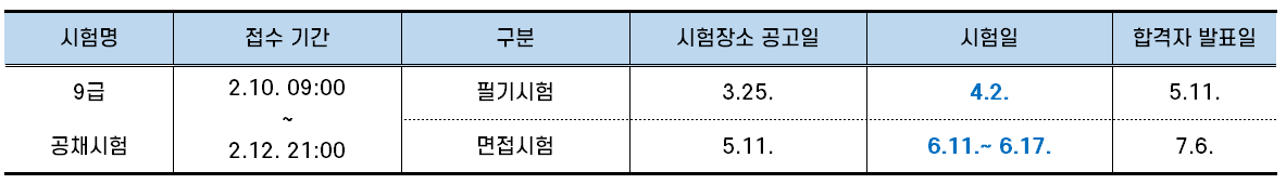 ▣ 2022년 9급 국가공무원 시험 일정