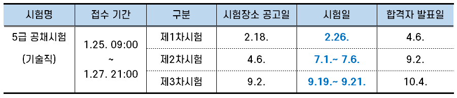 2022년 5급 공채 기술직(기술고시) 시험 일정